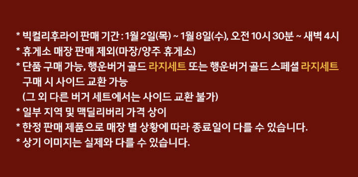 ๋งฅ๋„๋‚ ๋“œ ํ–‰์šด๋ฒ„๊ฑฐ ๋จน๊ณ  ํ•œ์ •ํŒ ๋น…์ปฌ๋ฆฌํ›„๋ผ์ด๊นŒ์ง€(1์›” 8์ผ๊นŒ์ง€ ํŒ๋งคํ•œ๋Œ€์š”!)