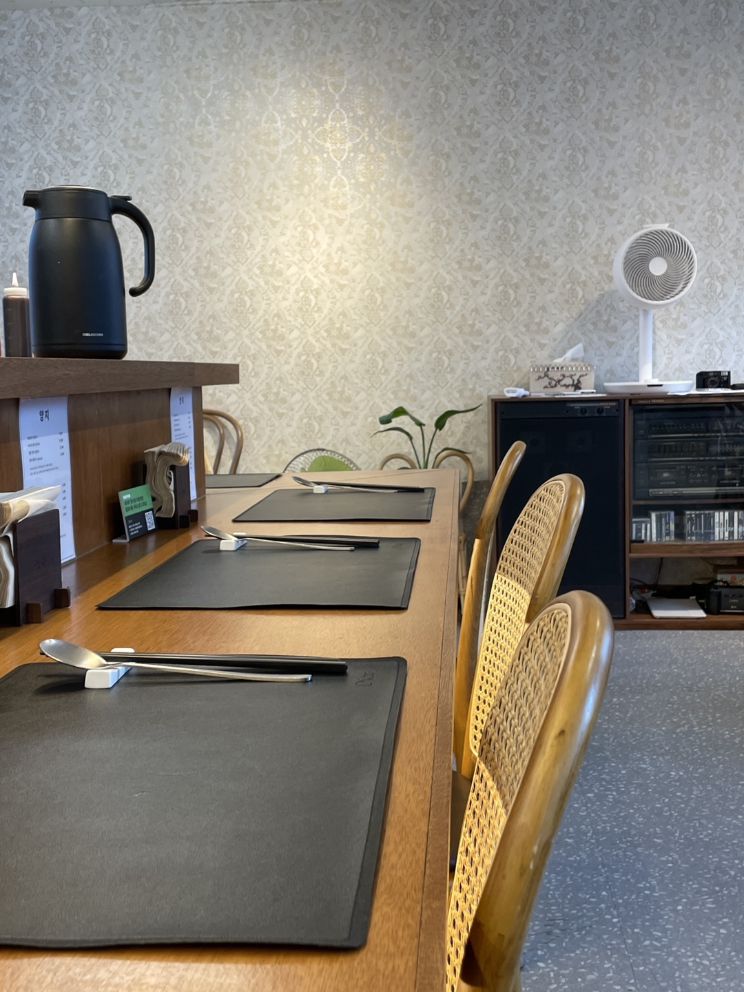 - 밥과 단무지는 셀프, 창가 쪽에 비치