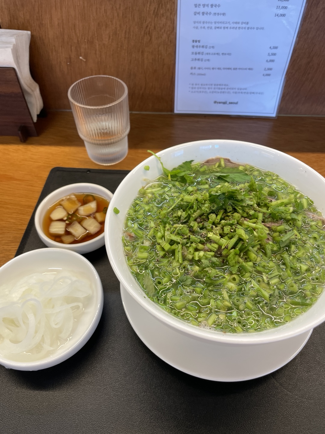 제가 주문한 메뉴는 미나리 양지 쌀국수였어요.