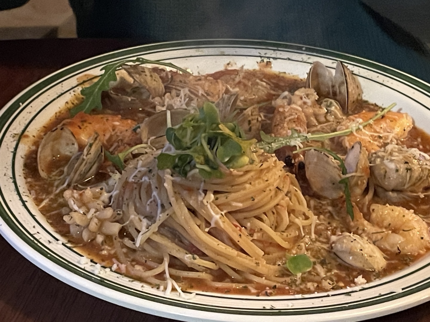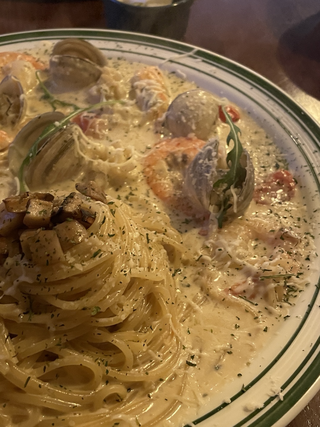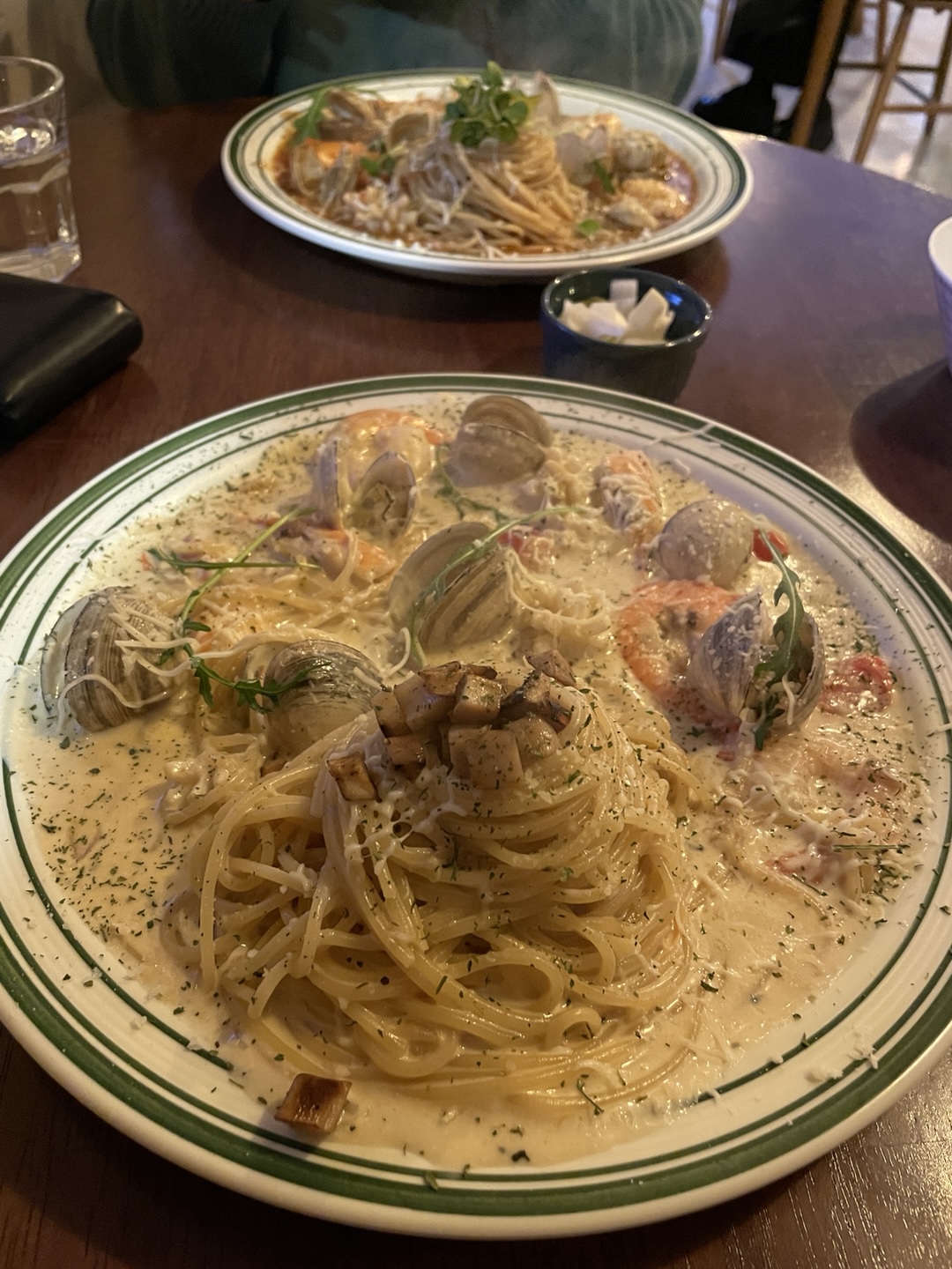 해산물 크림 파스타는 정말 꾸덕하면서 크리미해서 딱 한국인들이 좋아하는 크림 파스타의 맛이었어요! 해산물도 신선하고 양도 많았습니다. 그리고 해산물 토마토 파스타는 깔끔하면서 해산물도 많아서 간이 딱 좋았습니다 :)