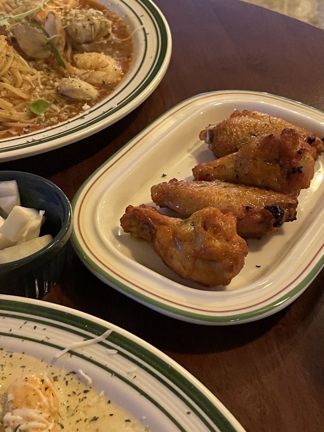 버팔로윙봉! 매운 걸 잘 못먹는 저는 매웠지만 파스타와 같이 먹으니 딱 좋았습니다!