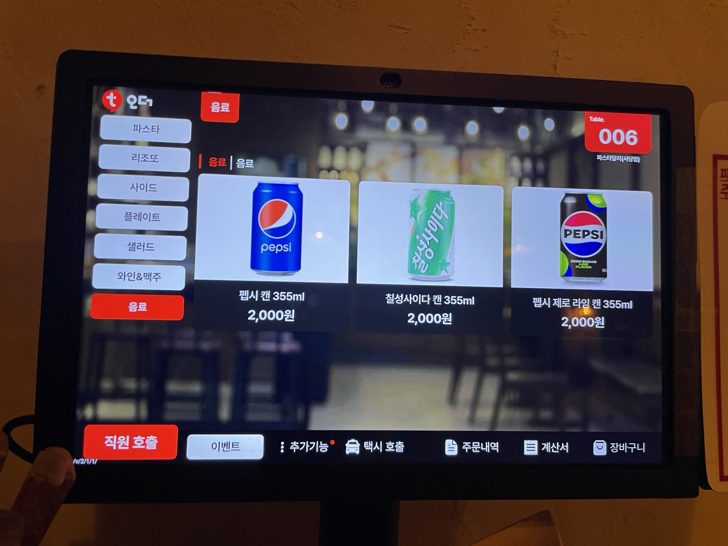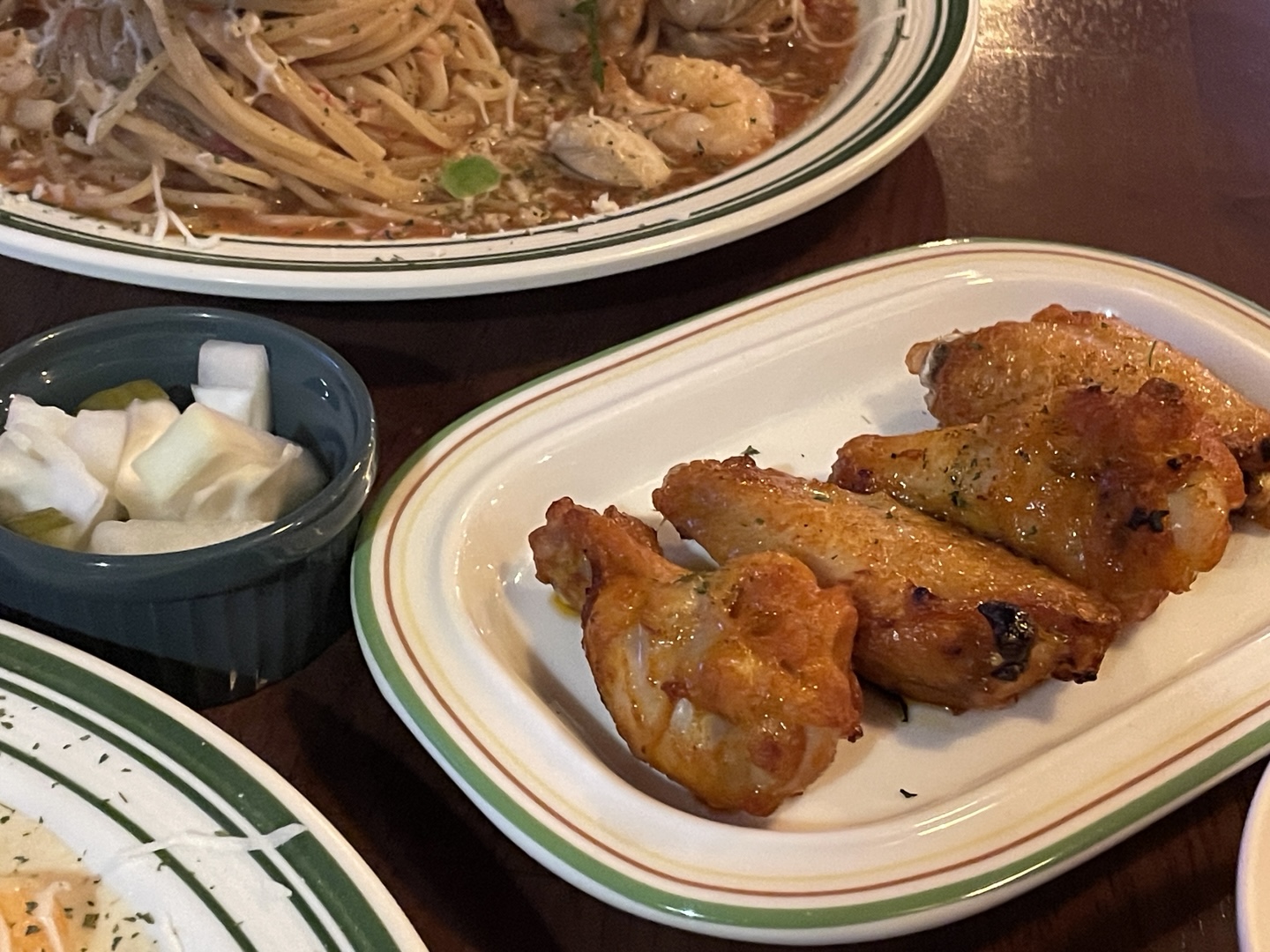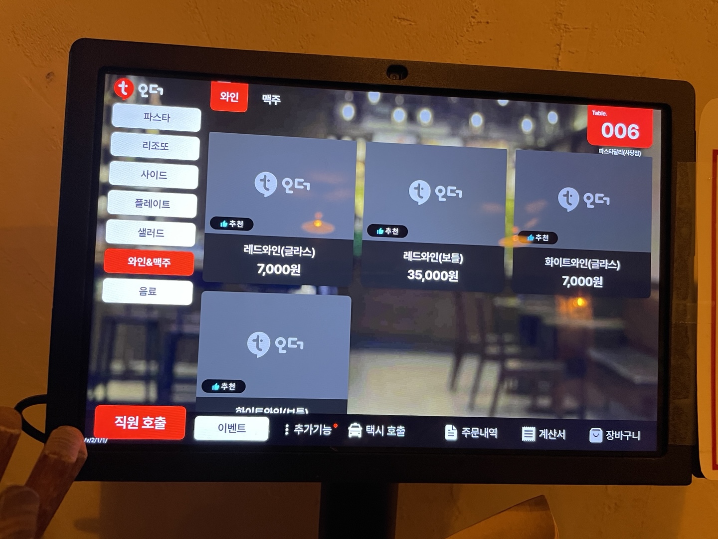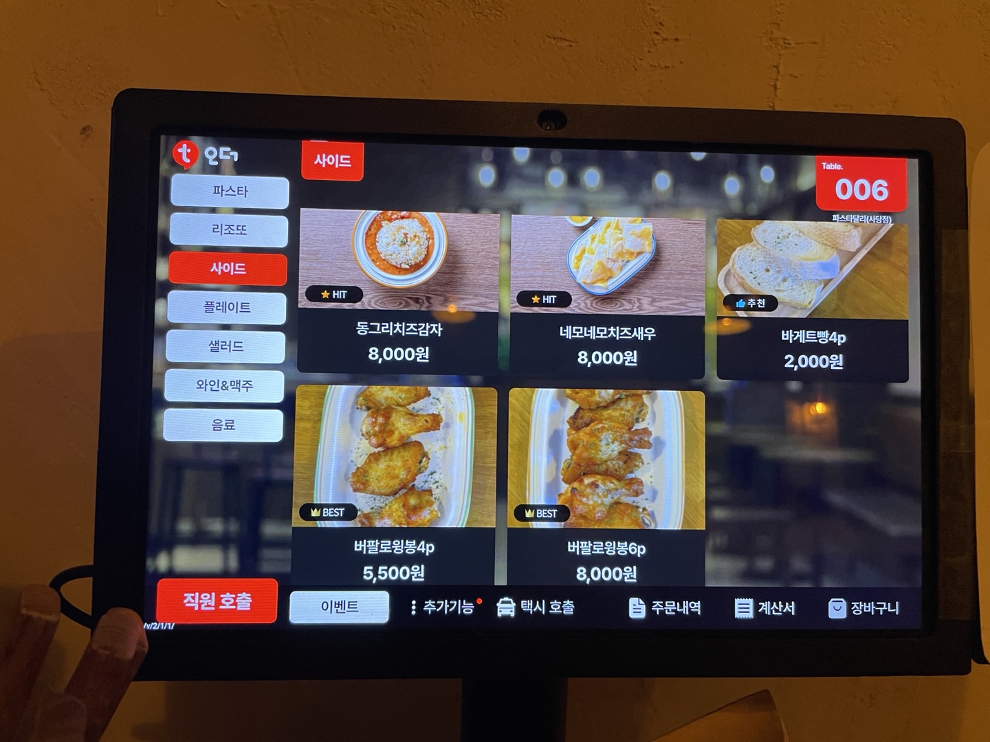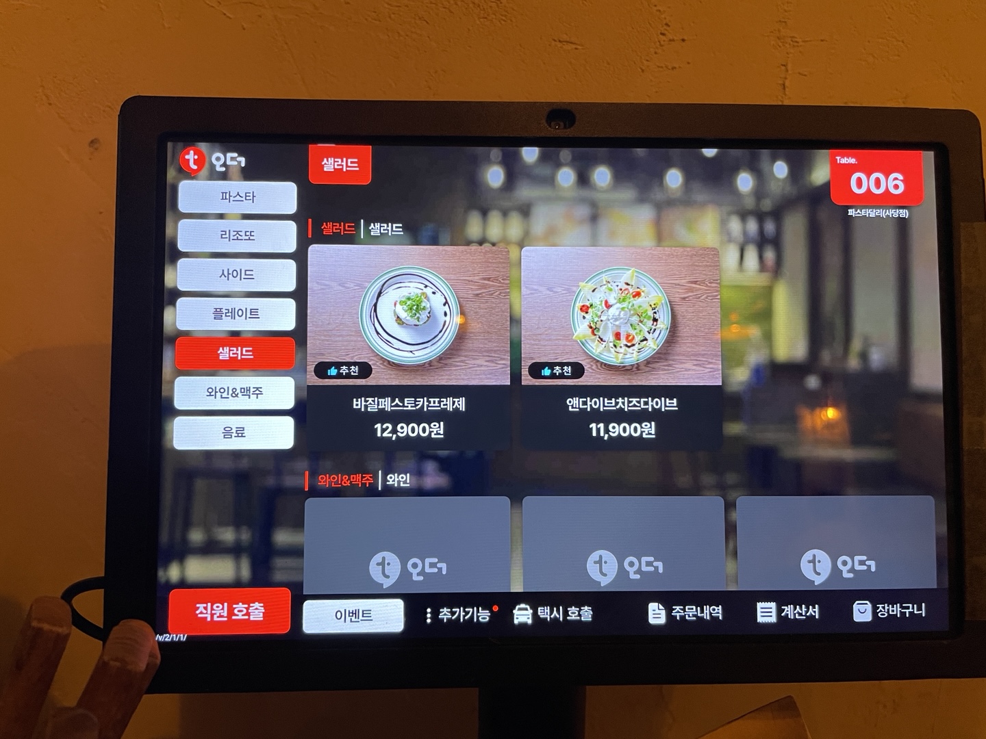 저희는 해산물 크림 파스타, 해산물 토마토 마스타, 버팔로윙봉 4pcs를 주문했어요.