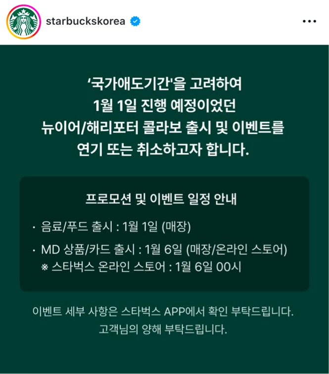 ๊ตญ๊ฐ์ ๋๊ธฐ๊ฐ์ ๊ณ ๋ คํ์ฌ 1์ 1์ผ ์งํ ์์ ์ด์๋ ๋ด์ด์ด/ํด๋ฆฌํฌํฐ ์ฝ๋ผ๋ณด ์ถ์ ๋ฐ ์ด๋ฒคํธ๋ฅผ ์ฐ๊ธฐ ๋๋ ์ทจ์ํ๋ค๊ณ ํฉ๋๋ค.