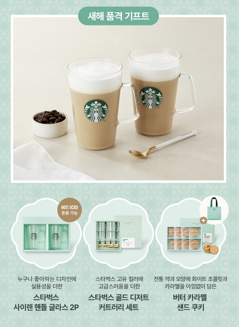 ์Šคํƒ€๋ฒ…์Šค์˜ ๋ฒ ์ŠคํŠธ ์ปคํ”ผ์™€ ๋จธ๊ทธ, ํ‘ธ๋“œ ๋“ฑ ์ธ๊ธฐ ์ƒํ’ˆ์„ ๊ธฐํ”„ํŠธ ์ „์šฉ ํŒจํ‚ค์ง€์— ํฌ์žฅํ•ด๋“œ๋ฆฝ๋‹ˆ๋‹ค.