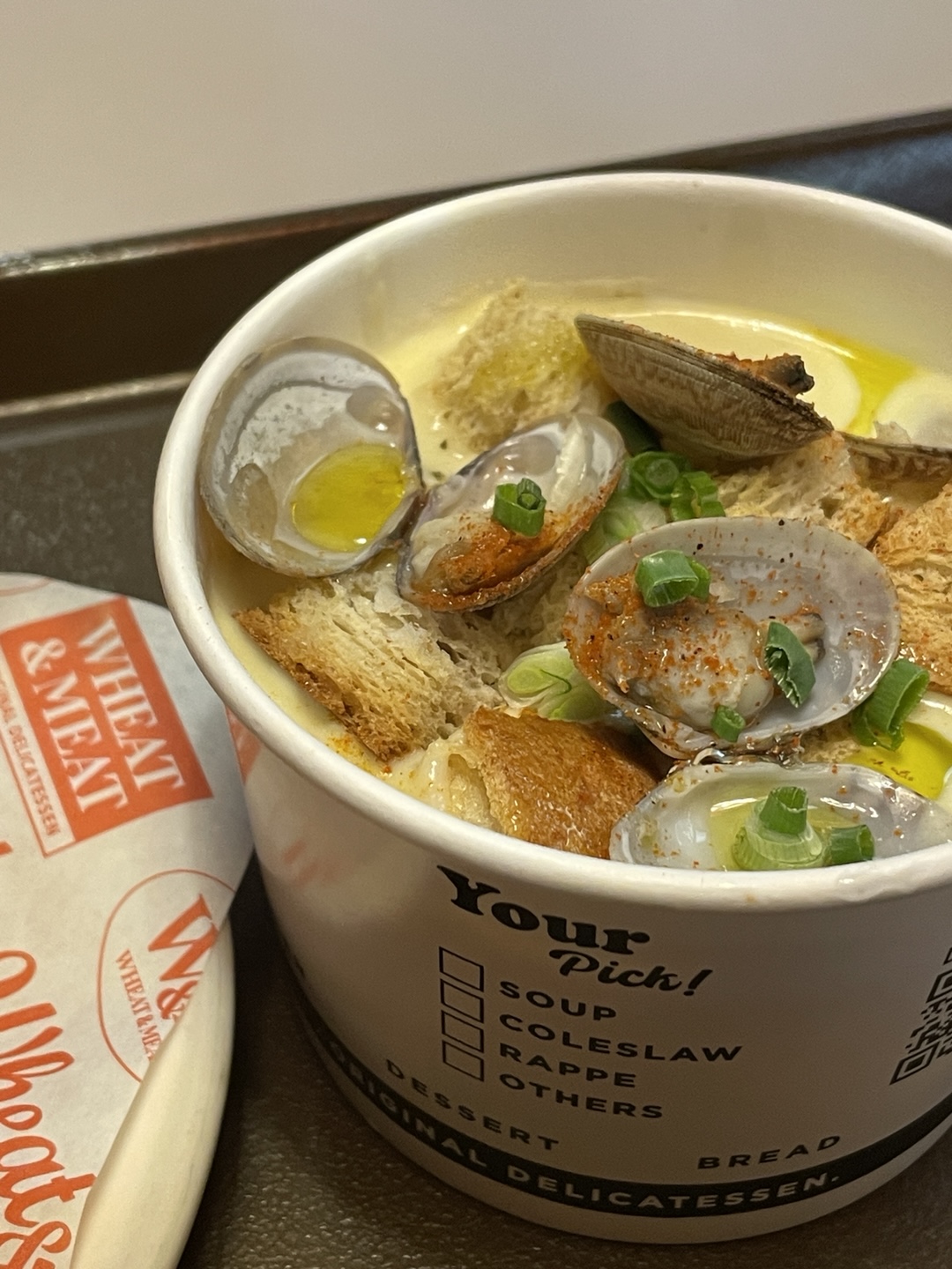 클램차우더 스프는 추운날 따듯하면서 입맛을 돋우기에 딱이었습니다. 감자가 들어있었어요!