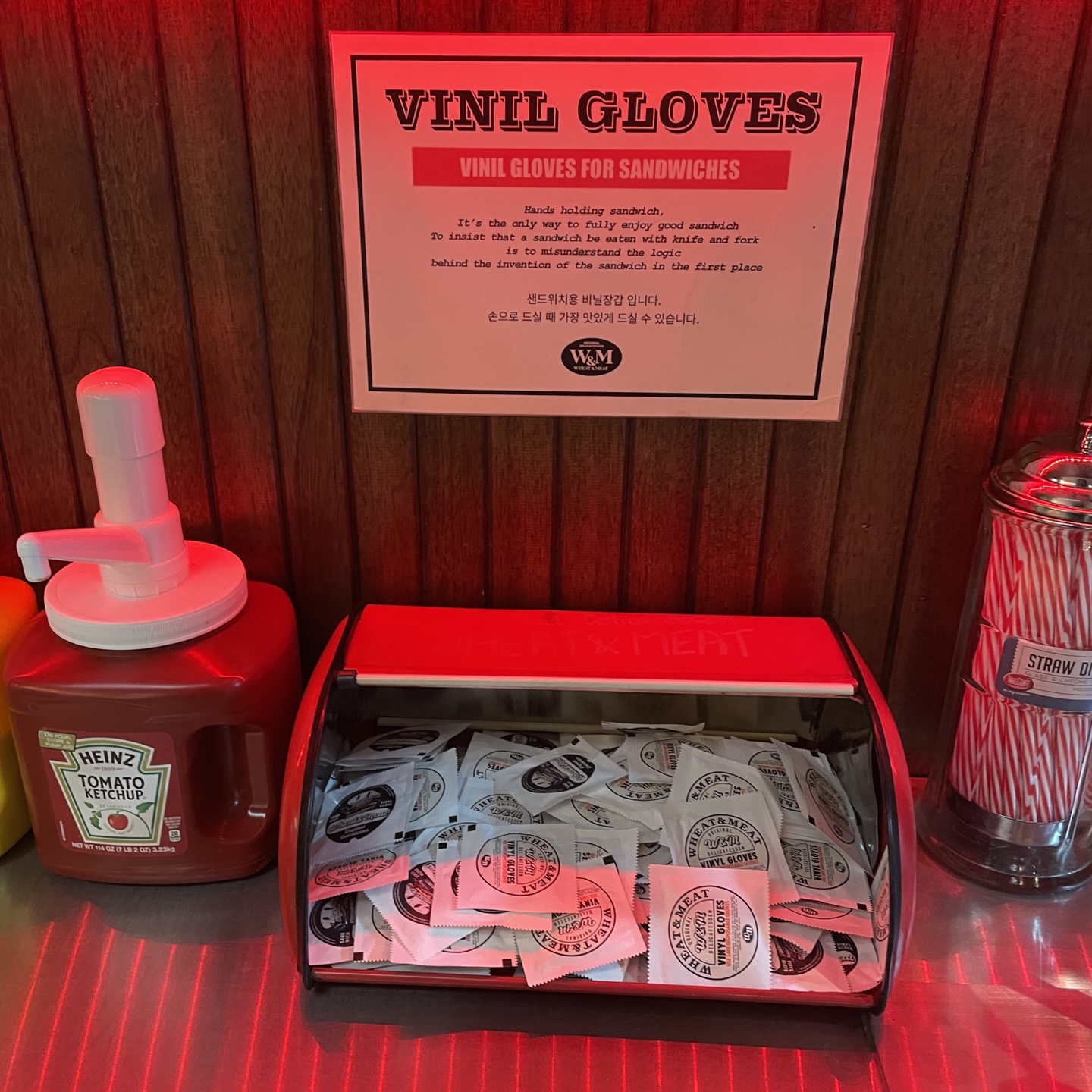 햄버거나 샌드위치를 편하게 손으로 들고 먹을 수 있도록 일회용 비닐장갑도 준비가 되어있었습니다!