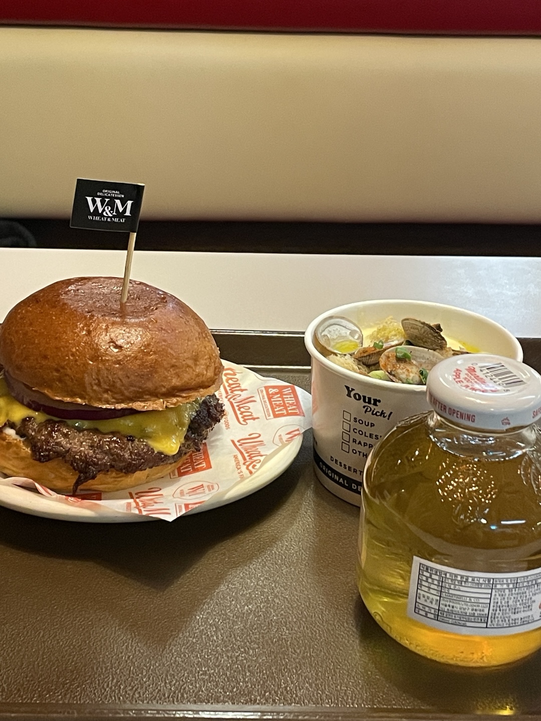 치즈버거와 클램차우더 스프를 주문했어요!