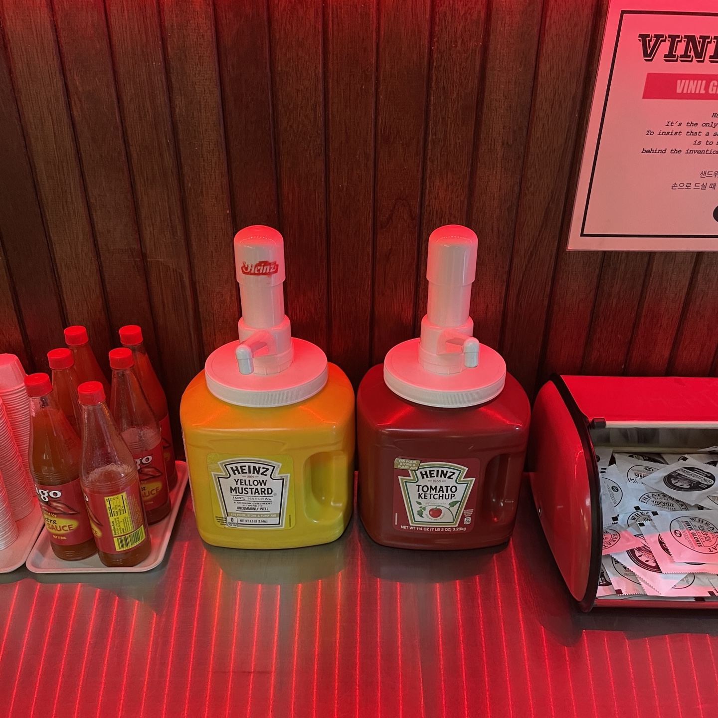 햄버거나 샌드위치를 편하게 손으로 들고 먹을 수 있도록 일회용 비닐장갑도 준비가 되어있었습니다!