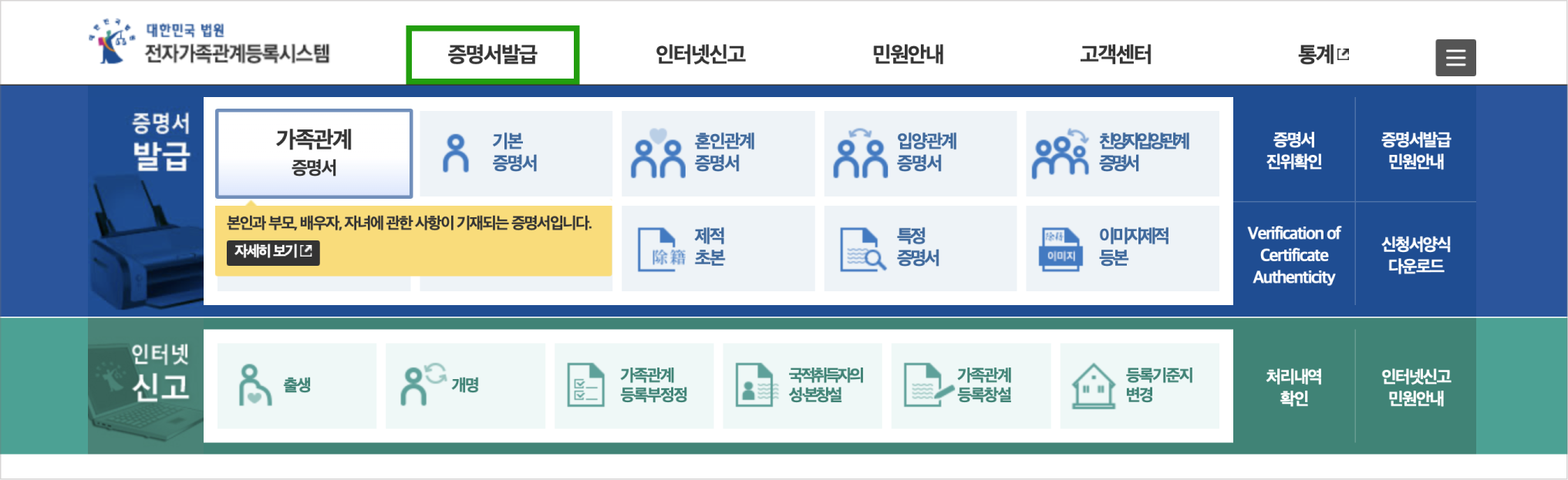 ๊ฐ์กฑ๊ด๊ณ๋ฑ๋ก๋ถ ์ ์ฒญ์ธ ์ ๋ณด ์กฐํ | ๊ฐ์กฑ๊ด๊ณ์ฆ๋ช ์ | ๊ฐ์กฑ๊ด๊ณ๋ฑ๋ก๋ถ | ์ฆ๋ช ์๋ฐ๊ธ | ์ ์๊ฐ์กฑ