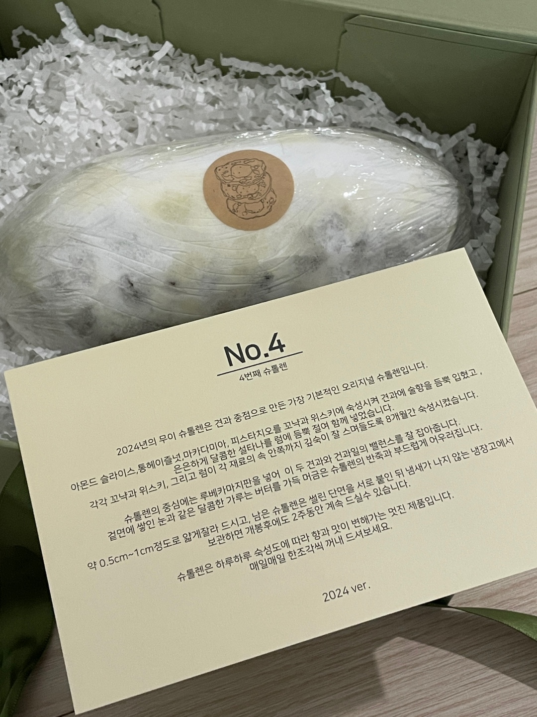 집으로 와서 슈톨렌을 열어보니 퀄리티가 좋고 박스도 튼튼해서 선물용으로도 추천드립니다!