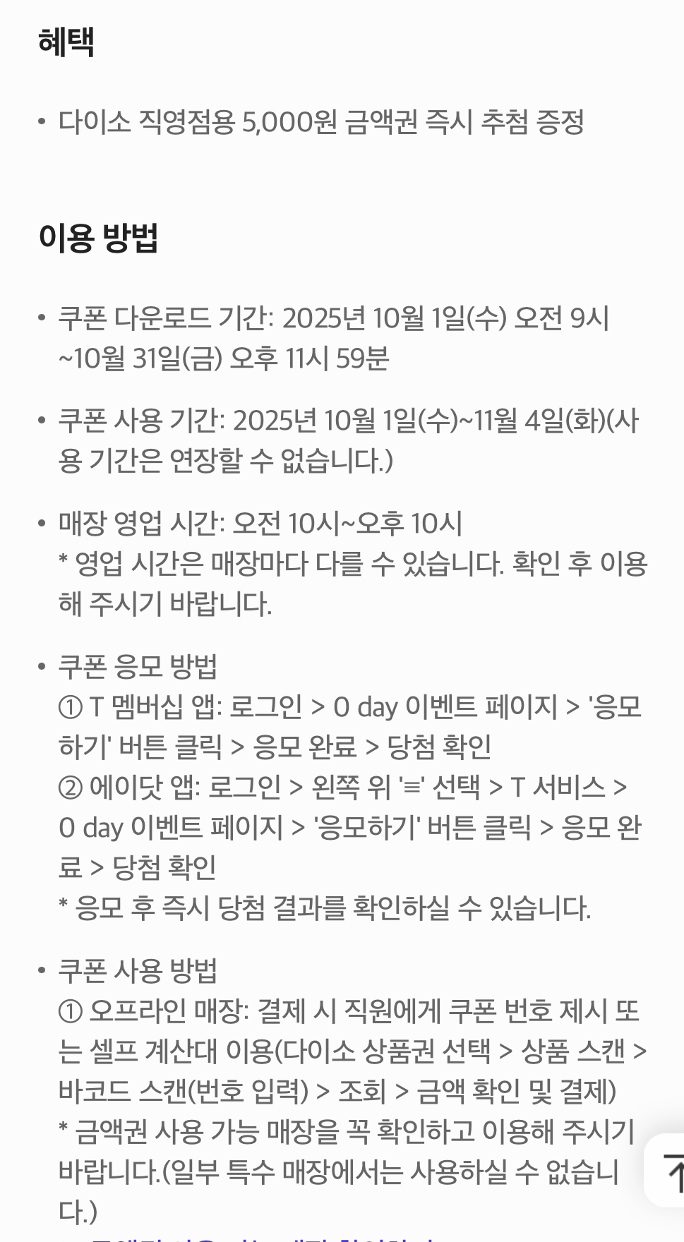 - ์ฟ ํฐ ๋ค์ด๋ก๋ ๊ธฐ๊ฐ: 2025๋ 10์ 1์ผ(์) ์ค์ 9์ ~ 10์ 31์ผ(๊ธ) ์คํ 11์ 59๋ถ