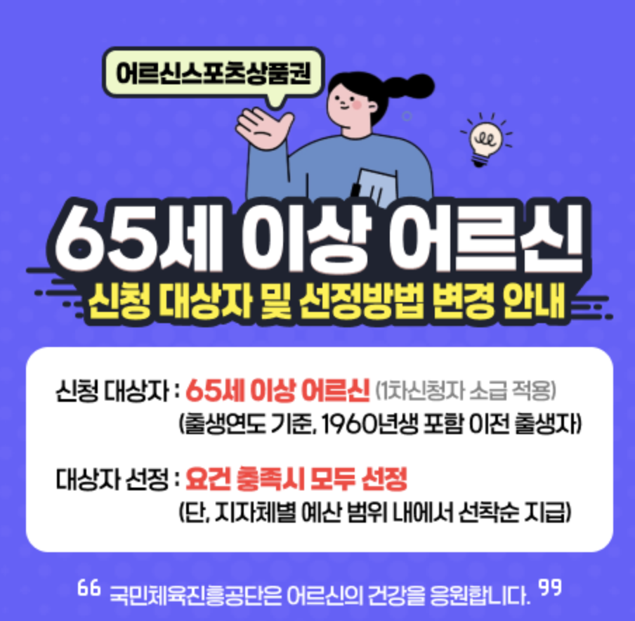 65์ธ ์ด์ ์ด๋ฅด์ ์ ์ํ ์ ๋ถ์ ์คํฌ์ธ ์ํ๊ถ ์ ๋, ํ ๋ถ๋น ์ต๋ 15๋ง ์๊น์ง ์ด๋๋น๋ฅผ ์ง์๋ฐ์ ์ ์๋ ๊ธฐํ!