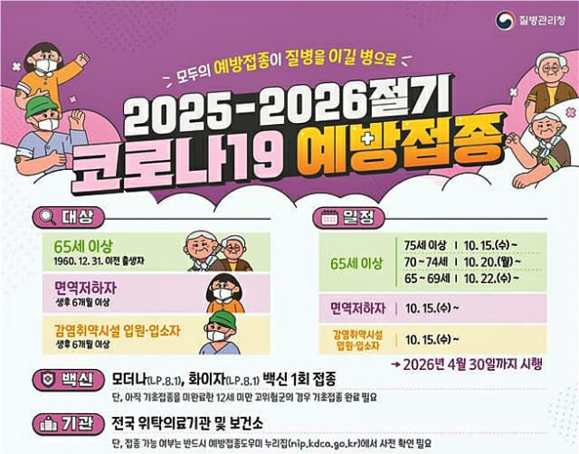 특히 λ©΄μ—­λ ₯이 μ•½ν•œ μ˜μœ μ•„, μž„μ‹ λΆ€, 고령측은 9~10μ›” 쀑 λΉ λ₯΄κ²Œ 접쒅을 μ™„λ£Œν•΄μ•Ό ν•©λ‹ˆλ‹€.