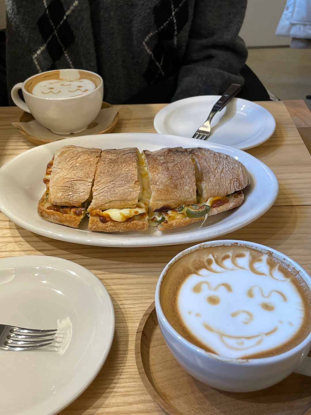 라떼는 산미가 적당하고 고소해서 좋았습니다! 그리고 라떼아트가 너무 귀여웠어요 🙂
