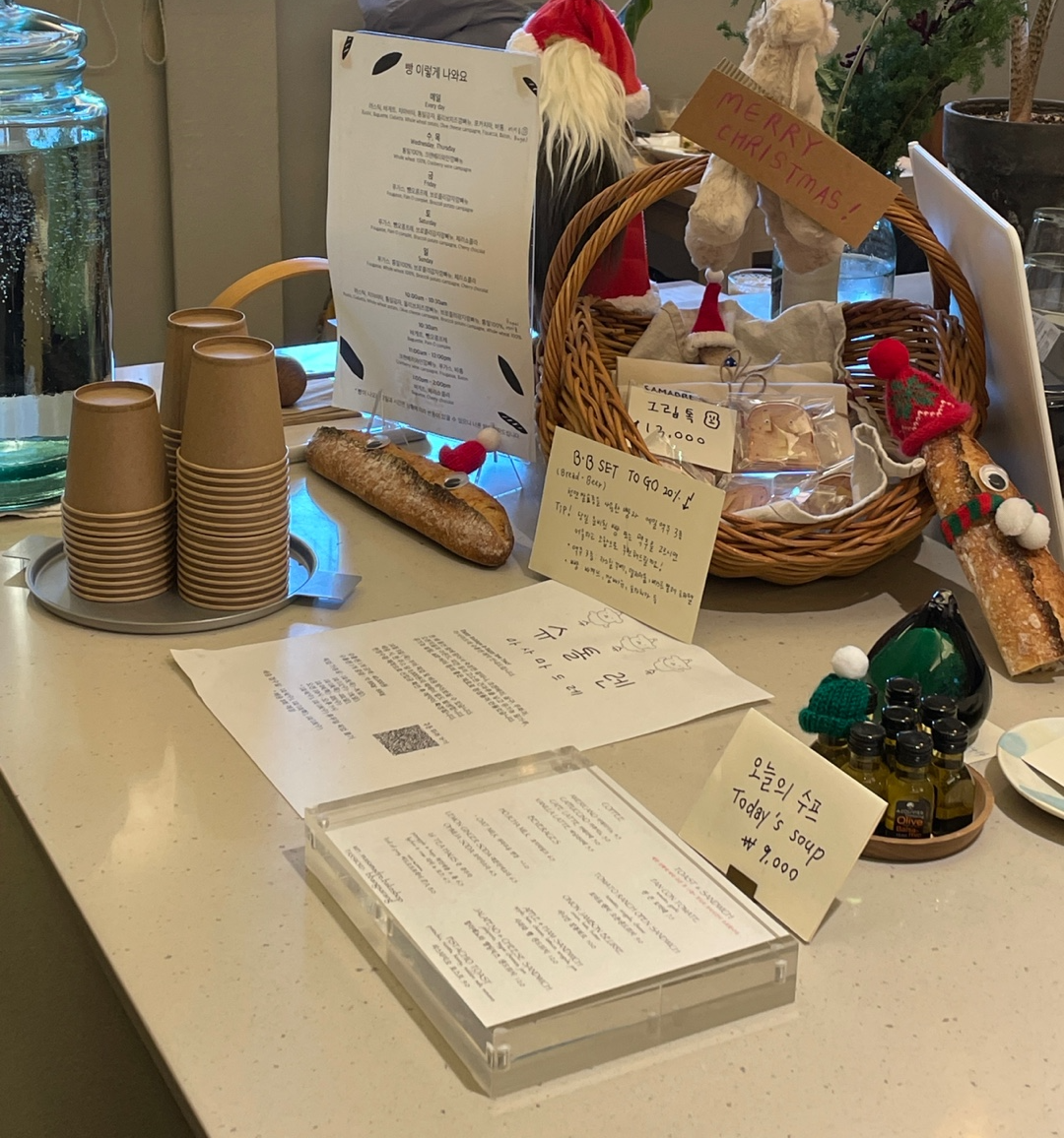 붉은색 건물 지하로 내려가면 고소한 빵 냄새로 가득찬 아늑하고 따듯한 공간이 나와요.