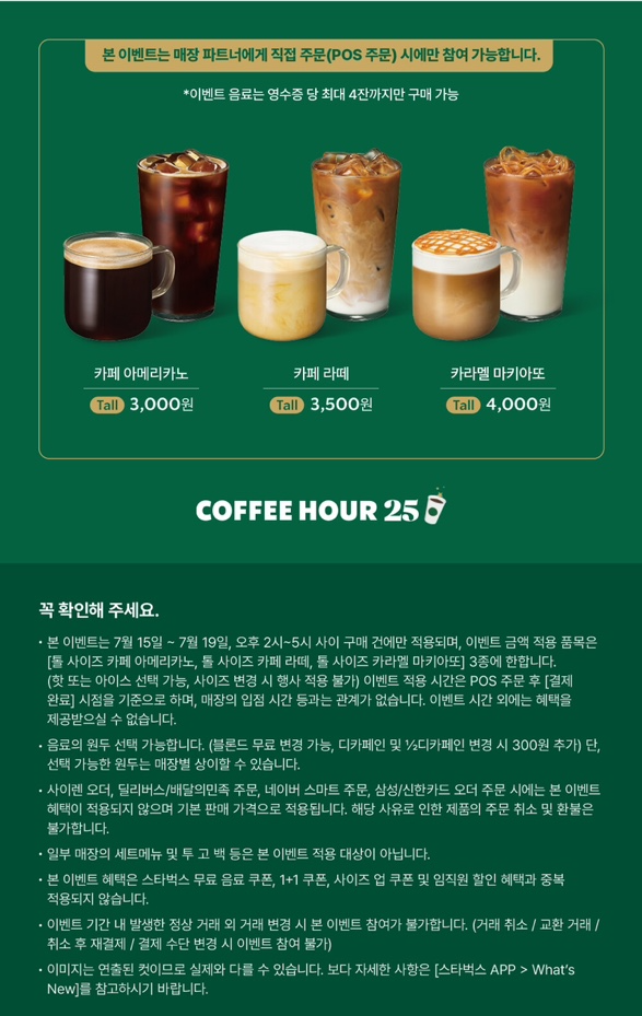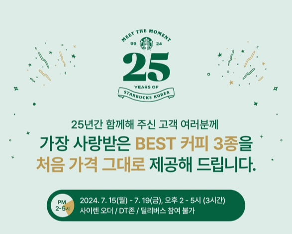 ์คํ๋ฒ ์ค ์ฝ๋ฆฌ์ ์ต์ด ์ถ์ ๊ฐ๊ฒฉ์ผ๋ก ์ ๊ณตํ๋ 'COFFEE HOUR 25' ์ด๋ฒคํธ๋ฅผ ์งํํฉ๋๋ค.