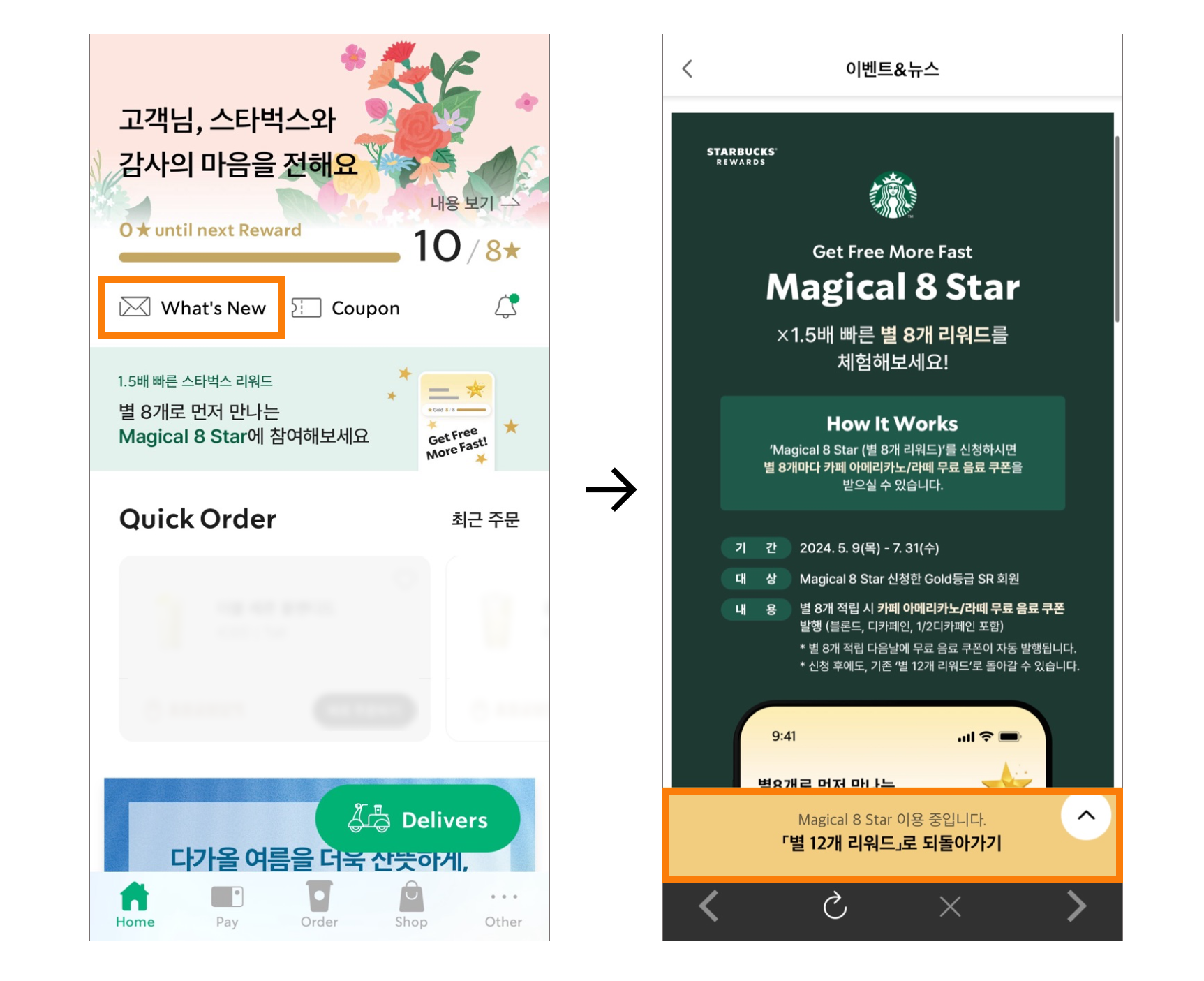 ์คํ๋ฒ ์ค ์ฑ > What's New > Magical 8 Star ๊ฒ์๋ฌผ ํ๋จ [๋ณ 12๊ฐ ๋ฆฌ์๋๋ก ๋๋์๊ฐ๊ธฐ] ๋ฒํผ์ ํตํด ์ฝ๊ฒ ๋ณ๊ฒฝํ ์ ์์ต๋๋ค.
