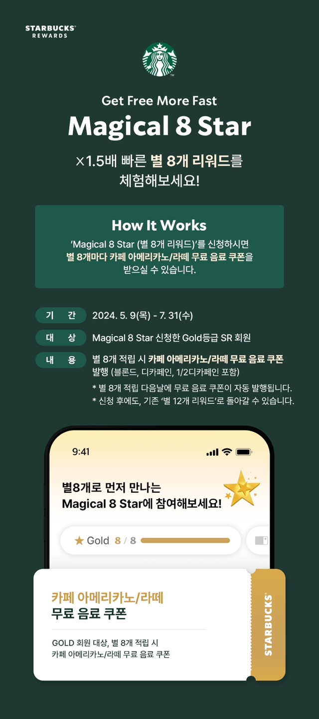 [์Šค๋ฒ… ์ด๋ฒคํŠธ] 1.5๋ฐฐ ๋น ๋ฅด๊ฒŒ! ์Šคํƒ€๋ฒ…์Šค ๋ณ„ 8๊ฐœ ๋ชจ์œผ๋ฉด ์•„๋ฉ”๋ฆฌ์นด๋…ธ/๋ผ๋–ผ ๋ฌด๋ฃŒ ์Œ๋ฃŒ ์ฟ ํฐ ์ด๋ฒคํŠธ (5/9~7/31)