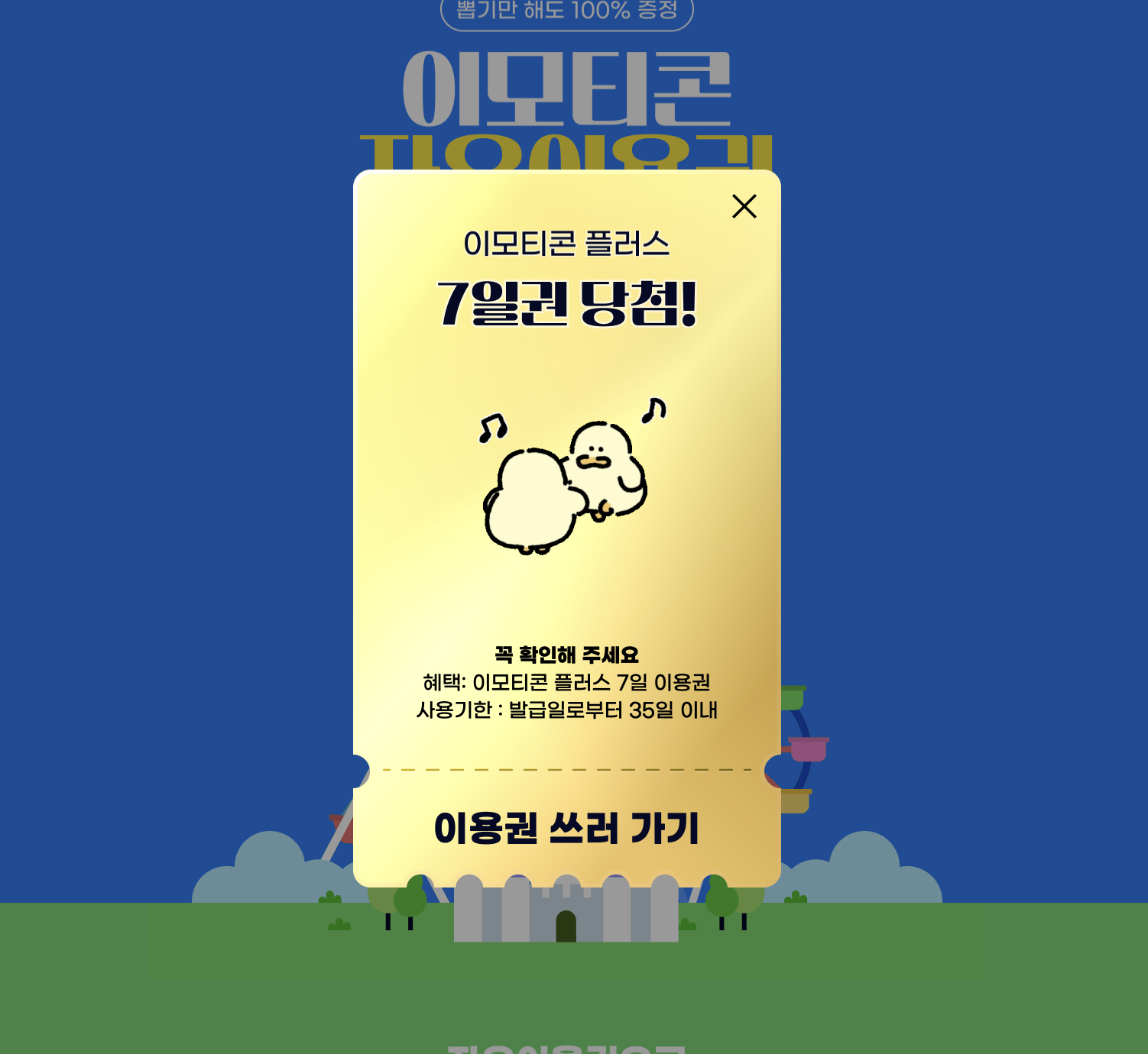뽑기만 해도 100% 증정! 3일권부터 최대 1년권까지, 누구나 무료로 드려요.